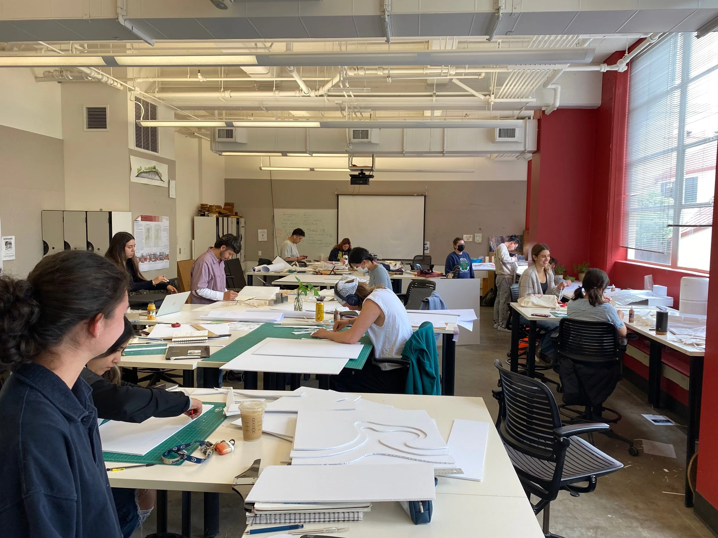 Urban design studio focuses students on the design and realization of conceptions they have of the city. Their imaginaries inform drawings and models of what the city could be. Students practice the following skills in studio and in the field: